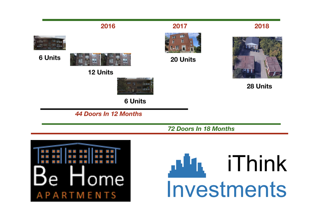 This is when I started to learn about Multi-Family investing. A good student and all-in mindset I have, I learned everything about it. I went to conferences, met people, got coaching, etc. The best way to learn is by doing it. We went all in and invested $1.1 Million of our savings and build a portfolio from 0 to 72 rental units in 18 months. That's 8 apartment buildings, in 4 different markets in Canada.